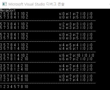 머지 소트의 경우 정렬하는 동안 동일한 길이의 배열이 하나 더 필요함