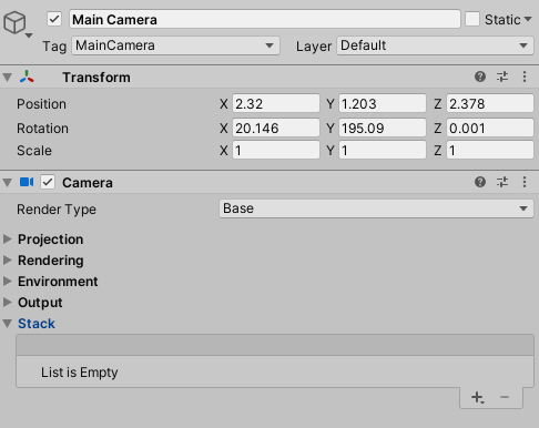 오버레이 타입 카메라를 메인 카메라의 Stack 리스트에 추가해주면 끝
