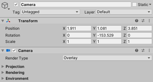 추가 카메라 렌더 타입을 Obeerlay로 설정