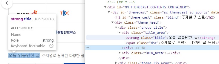 F12를 눌러 원하는 요소를 찾음